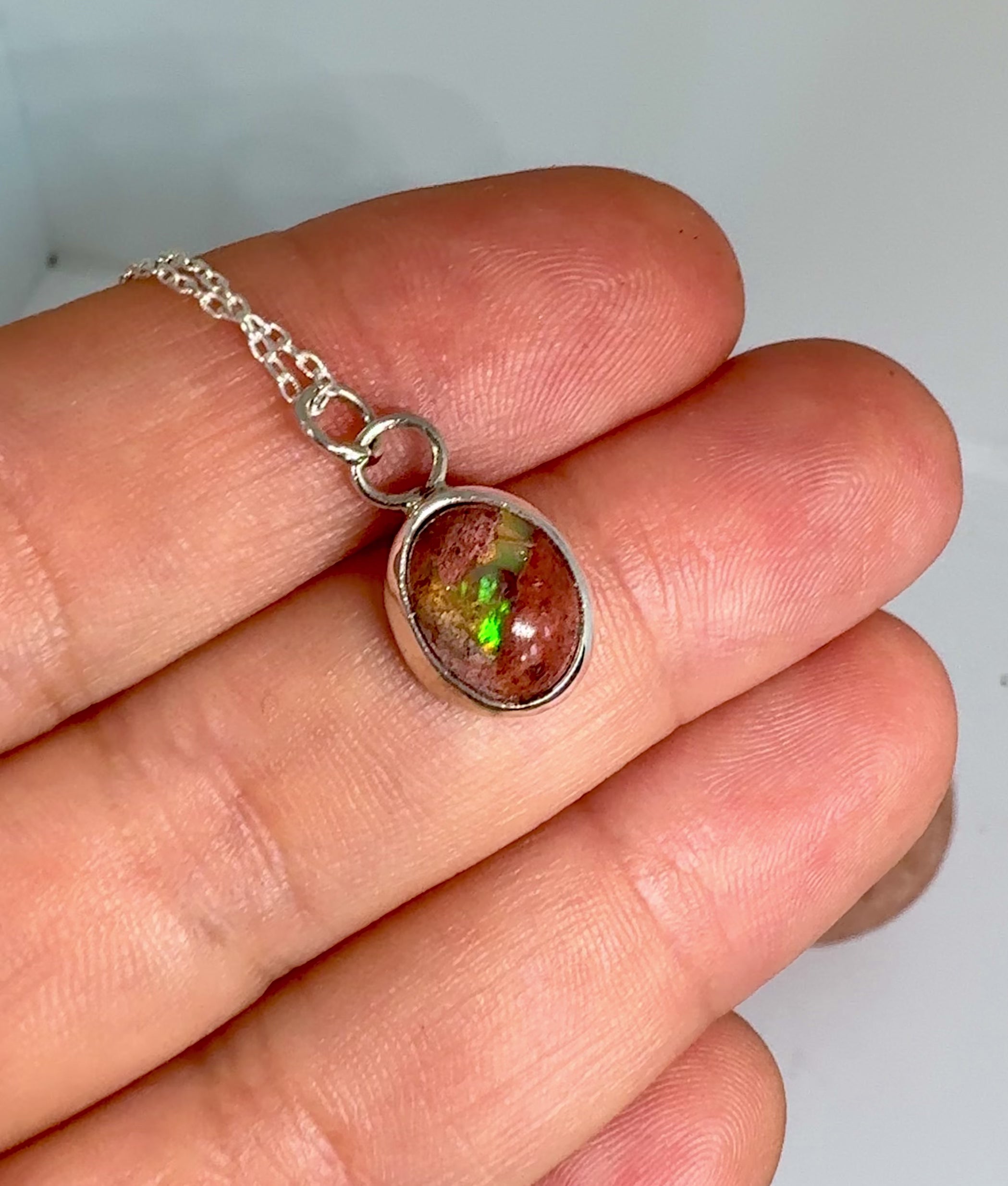 Collar hecho a mano en plata de Ley con ópalo de fuego méxicano.